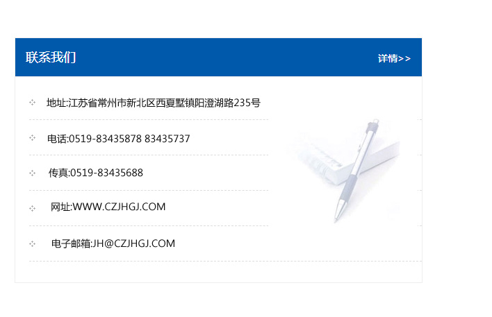 地址:常州市新北區友邦商務大廈1幢16、17層  電話:0519-85101652  傳真:0519-85112595  郵編:213022  網址:www.cz-jiayue_cn.outaicn.com  郵箱:xiajifengaa@163.com